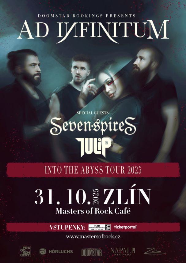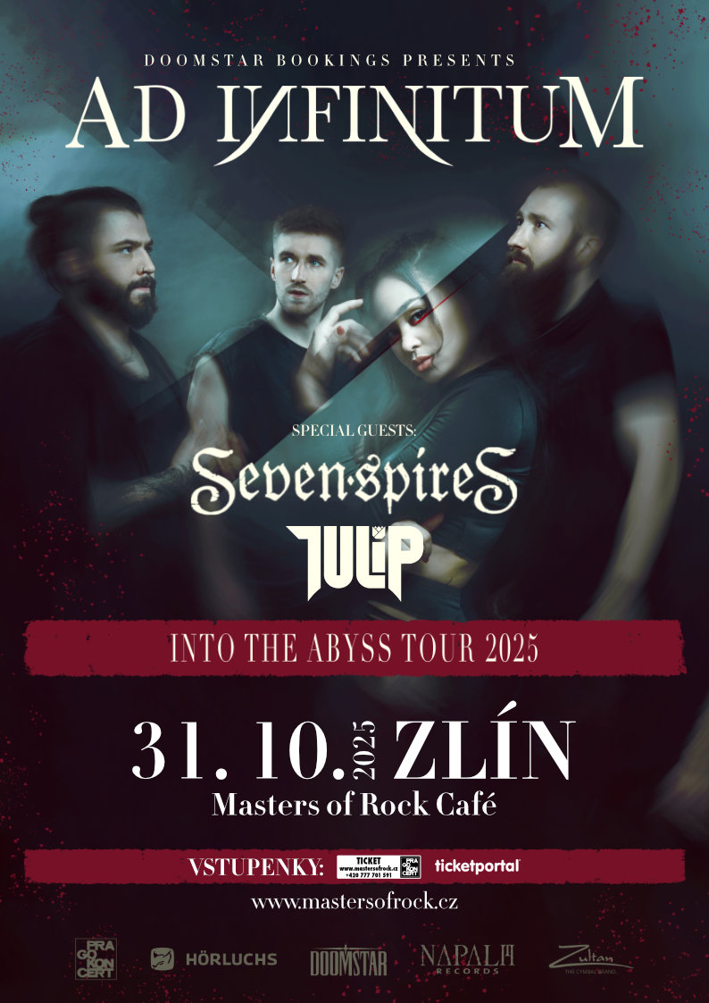 AD INFINITUM jsou stále v pohybu. Jsou velmi inovativní, otevření všemu novému a těší se, až vás na podzim vtáhnou do svého fascinujícího hudebního světa! Jejich podzimní turné „Into Abyss Tour 2025“ se zastaví 31. října 2025 ve zlínském klubu Masters of Rock Café!