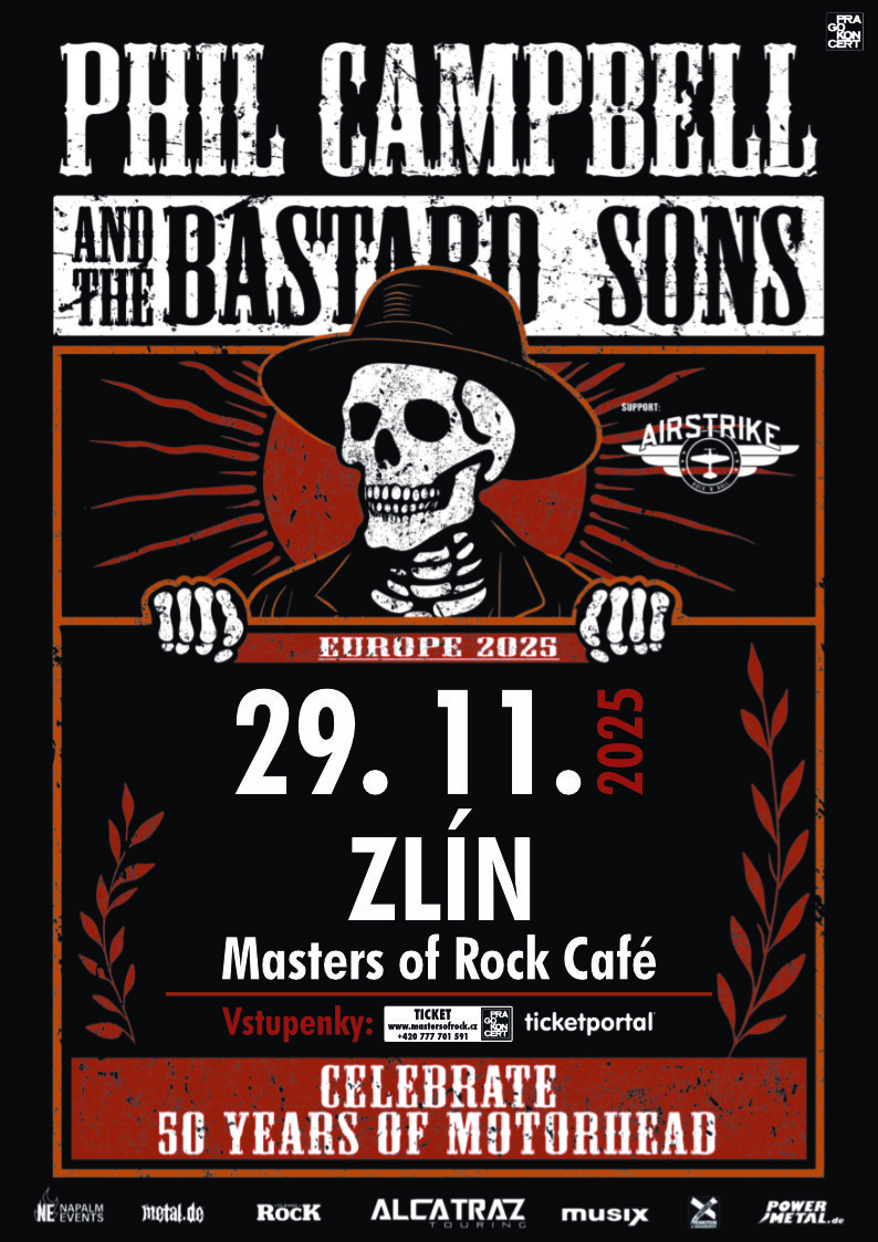 Slavný kytarista ještě slavnější metalové legendy MOTÖRHEAD, PHIL CAMPBELL chystá na podzim letošního roku velké věci! Velkolepé turné oslavující 50 výročí MOTÖRHRAD! A tak PHIL posbírá své synátory a společně vyrazí na cestu po Evropě, aby dále šířil slávu a věhlas své slavné původní kapely a abyste si i vy mohli na Lemmyho a jeho nezapomenutelný hlas a charisma zavzpomínat! Fanoušci se mohou těšit na set napříč celou kariérou MOTÖRHEAD, od syrové síly debutového alba až po drtivou intenzitu novějších alb – včetně vzácných klasik, které nebyly hrané roky.
