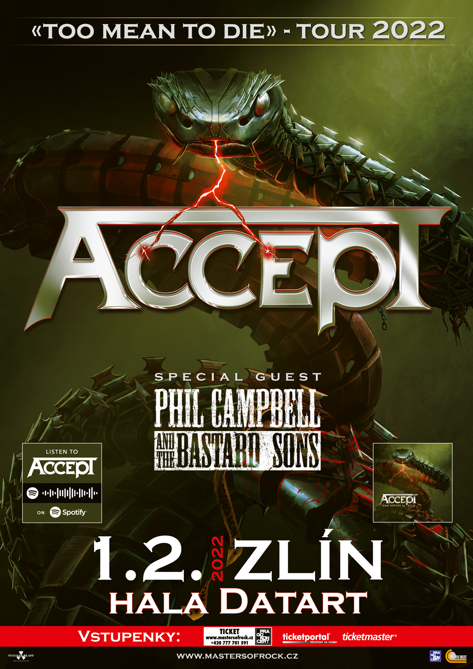 Vstupenky na turné ACCEPT „Too Mean To Die“ 2022, vč. toho našeho, zlínského jsou již v prodeji a chystá se také možnost zakoupení exklusivních VIP vstupenek, které zaručí i setkání s kapelou a podpis fotografie kapely.