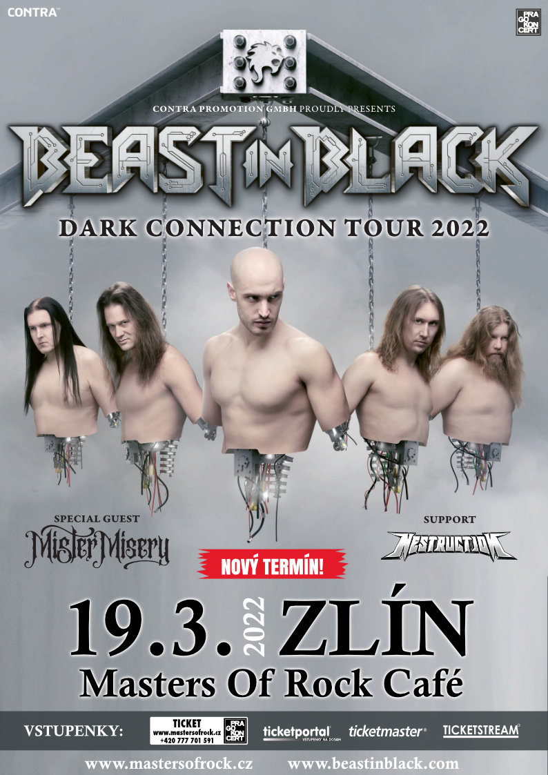 Žhavá cyberpunk-metalová show BEAST IN BLACK, MISTER MISERY a NESTRUCTION tedy roztaví poslední zbytky ledu ve ZLÍNĚ, Masters of Rock Café, 19. března 2022 a koncertní jaro tak bude officiálně zahájeno!