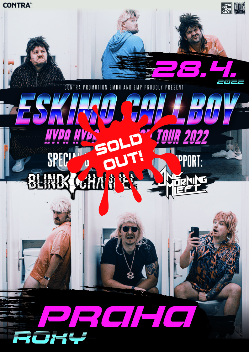 ESKIMO CALLBOY s sebou na své „Hypa Hypa Tour 2022“, bere i super hosty, kapely BLIND CHANNEL a ONE MORNING LEFT. PRAHA je už 18 vyprodaným koncertem tohoto turné a vypadá to, že tady máme novou, mladou metalovou raketu, která navzdory všemu míří hodně vysoko. Majitelé vstupenek těšte se, čeká na vás naprosto nevídaná show, která vás nabije obrovskou dávkou energie!