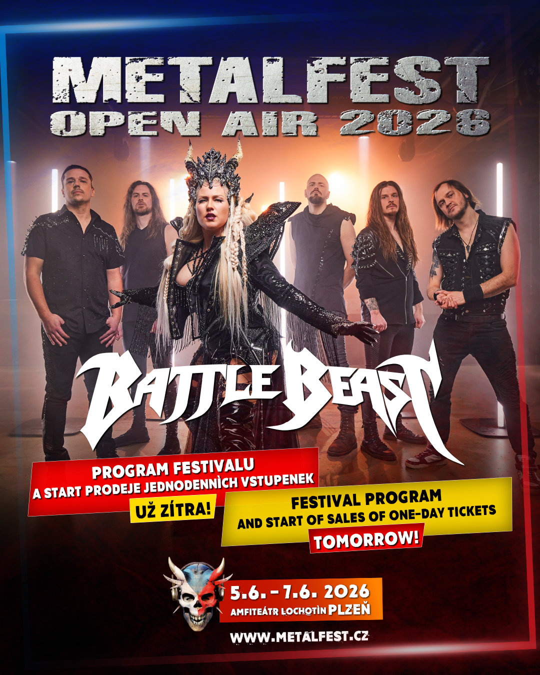 BATTLE BEAST jsou poslední potvrzenou kapelou METALFESTU 2026 a program je tímto hotov! Už ZÍTRA, v úterý 16. 12. v 10:00, si ho budete moci prostudovat a naplánovat si svůj pobyt v PLZNI na hodiny a minuty. Zároveň bude zahájen také prodej limitovaného množství jednodenních vstupenek, za super zaváděcí cenu, aby dostali svou příležitost opravdu všichni fanoušci, i ti, kteří se nemohou zúčastnit všech 3 festivalových dní!