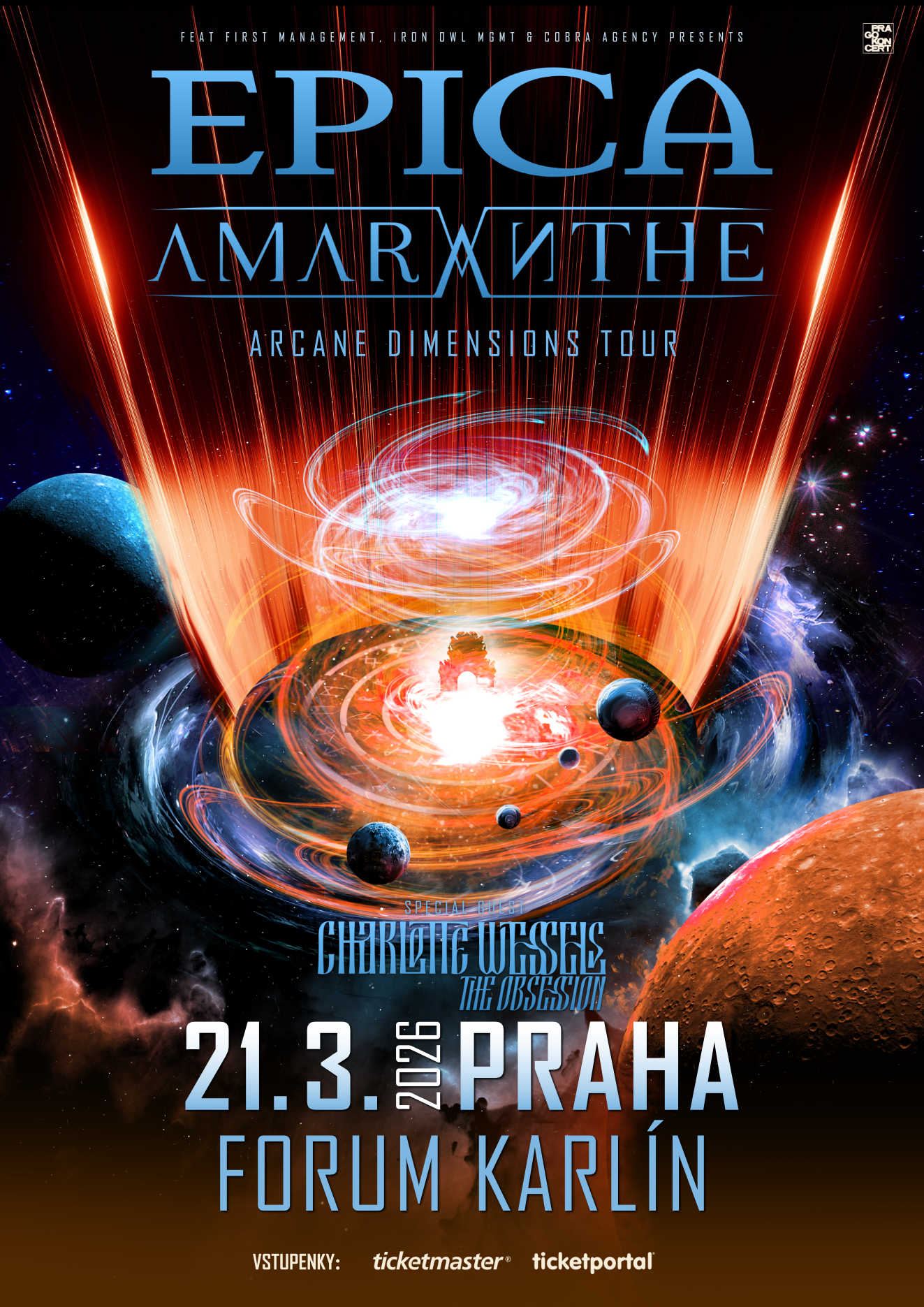 Začátkem roku 2026 spojí své síly průkopníci symfonického metalu EPICA a metaloví giganti AMARANTHE a vyrazí na turné „Arcane Dimensions Tour“, které je zavede do 26 měst ve 13. zemích Evropy! Do PRAHY, Fóra Karlín, doputují v sobotu 21. března 2026!