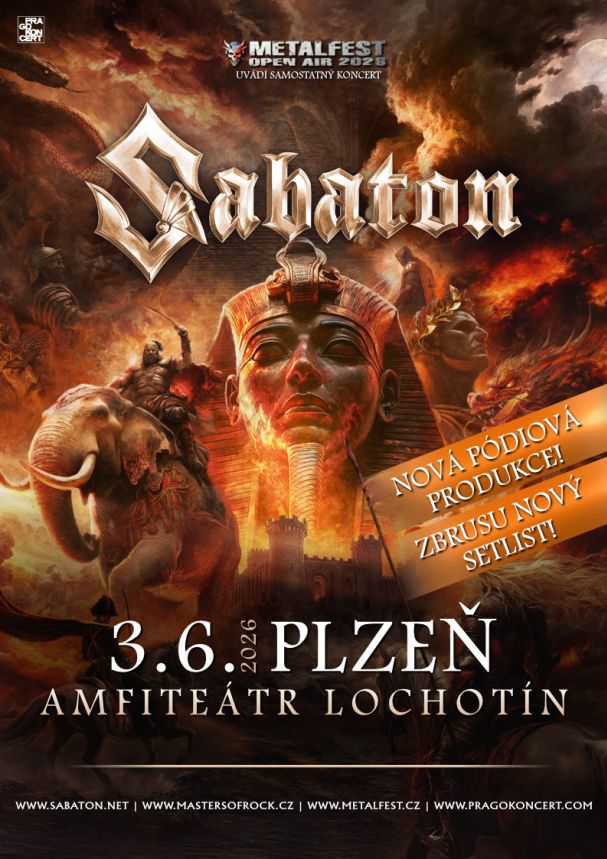 Neúnavní a vám, metalovým fanouškům, zcela oddaní SABATON, se vrací na začátku června 2026 do ČR! Se svým zatím posledním, aktuálním albem „Legends“, které vyšlo nedávno, otevřeli zbrusu novou kapitolu své umělecké cesty a s tou teď ohromují masy po celém světě!