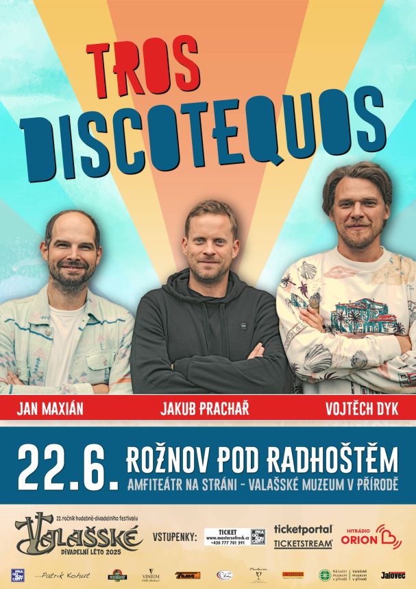TROS DISCOTEQUOS - Vojta Dyk, Jan Maxián, Jakub Prachař – 22. 6. 2025 – 20:00, ROŽNOV POD RADHOŠTĚM, Amfiteátr Na Stráni Valašského Muzea v přírodě
